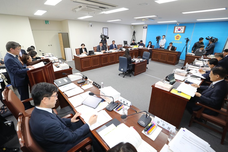 제주도의회 교육위원회가 지난 13일 제439회 정례회 1차 회의에서 열어 지난해 회계연도 제주도교육청 결산안과 조례안 등을 심사하고 있다. 제주도의회 제공