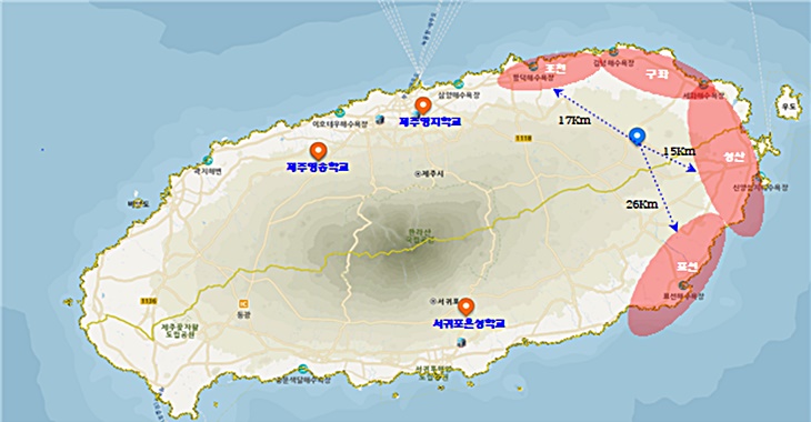 15일 도교육청에 따르면 도교육청은 조천·구좌·성산·표선 등 제주 동부지역 특수교육 대상자를 위해 도유지인 제주시 구좌읍 송당리 2만2067㎡ 부지에 390억원을 들여 7155㎡ 규모의 특수학교를 신설할 계획이었다. 그러나 지난 1월 교육부의 중앙투자심사에서는 설립 예정지의 교육환경유해시설(송전탑), 폐교 활용 등을 종합적으로 고려해 '부지 재검토'라는 결정이 내려졌다.