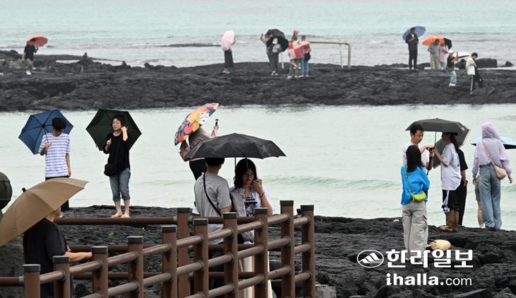 [한라일보] 장맛비가 내린 지난 14일 제주시 협재해수욕장에 많은 관광객들이 찾아 초여름 바다를 즐기고 있다. 강희만기자