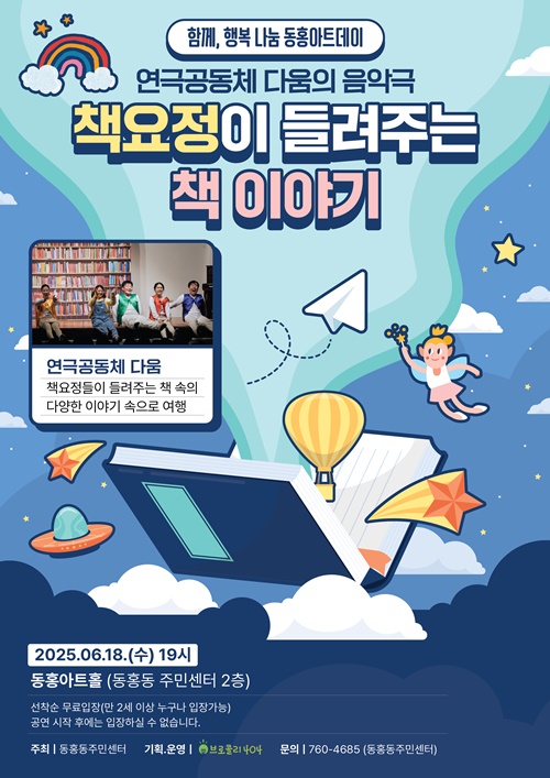 서귀포시 동홍동은 이달 18일 오후 7시 동홍아트홀에서 2025 동홍아트데이 6월 공연으로 '책요정이 들려주는 책 이야기'를 연다.