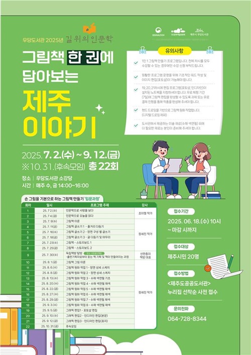참여 신청은 이달 18일 오전 10시부터 제주도 공공도서관 누리집에서 하면 되며, 선착순으로 제주시민 20명을 모집한다. 박소정기자