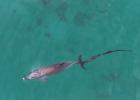 지난 9일 남방큰돌고래 '행운'의 꼬리에 폐어구가 걸린 채 발견됐다. 한라일보 DB