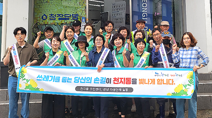 서귀포시 천지동(동장 강은아)은 최근 동민 제안 사항이었던 '내 집 내 점포 앞 우리가 청소하기' 환경개선 캠페인을 전개했다.