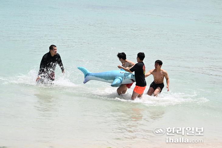 초여름 물놀이 즐기는 관광객. 한라일보DB