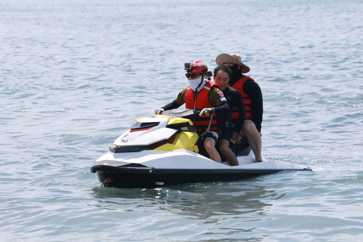 19일 오후 제주시 삼양해수욕장에서 제주해양경찰청 해안구조대와 제주소방안전본부가 인명구조 훈련을 실시하고 있다. 제주해양경찰청 제공