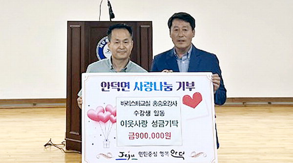 성금은 '안덕면 발전방안 연구 포럼'에 앞서 열린 수국축제 기간 판매한 원두커피 수익금으로 마련됐다.