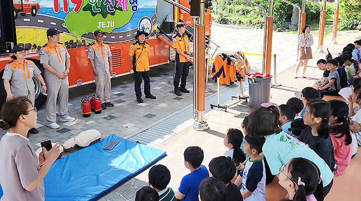 동부소방서(서장 김승용)는 지난 25일 신촌 유치원 및 초등학생 90여 명을 대상으로 이동안전체험차량을 활용한 안전 체험 교육을 실시했다.