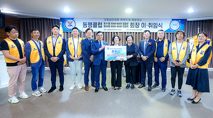 국제와이즈멘 한국지역 제주지구 동행클럽(회장 박용덕)은 지난 21일 회장 이·취임식을 기념하며 제주영락종합사회복지관(관장 이상언)에 100만원을 후원했다.