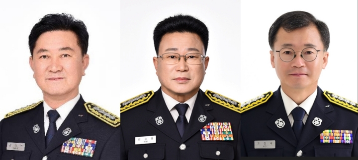 사진 왼쪽부터 강성부 신임 동부소방서장, 김승용 신임 서부소방서장, 고정배 신임 서귀포소방서장