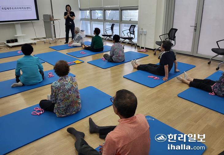 국립제주트라우마치유센터에서 4·3유족 등을 위한 운동 치유 프로그램이 진행되고 있다. 진선희기자