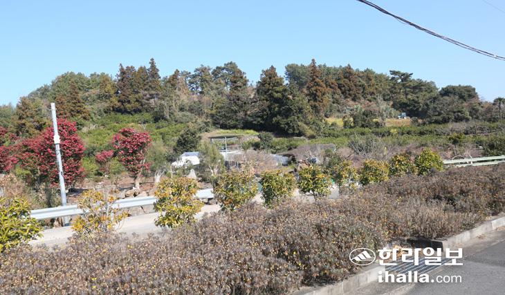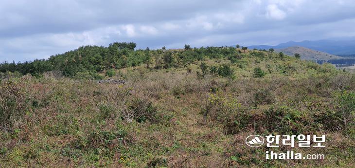 감낭오름, 안덕면 동광리에 있다. 신산오름과 감낭오름은 위가 평평하다.