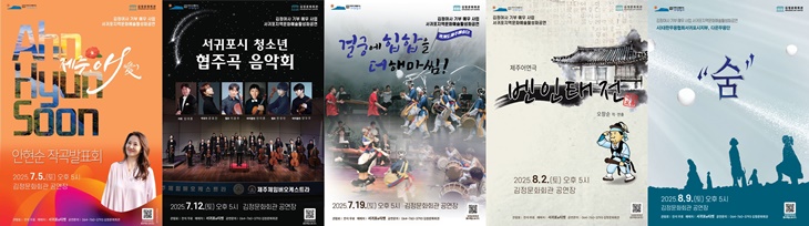 올해도 이어지는 사업의 일환으로 '2025 서귀포 지역 문화예술 활성화 공연 시리즈'를 마련해 선보인다. 공연은 7월 5일부터 8월 9일까지 매주 토요일(7월 26일 제외) 오후 5시에 김정문화회관 공연장에서 각각 열린다.