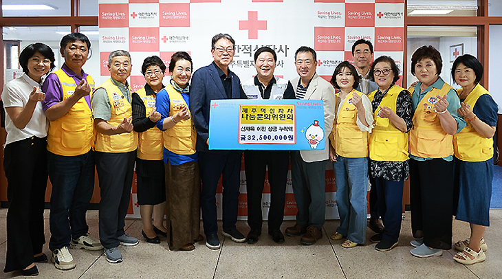 전달된 성금은 3250만원으로 제주적십자 신사옥과 대한적십자 제2 인재개발원 건립 지원을 위해 나눔문화위원들이 조성한 재원이다.