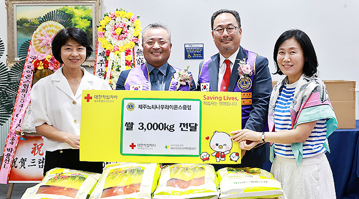 전달된 쌀은 제주느티나무라이온스클럽이 최근 개최된 회장·임원 이·취임식을 기념해 화환 대신 받은 쌀을 대한적십자사 제주도지사에 기부한 것이다.