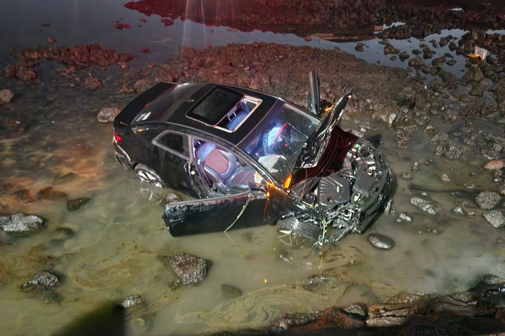 지난 1일 밤 10시 53분쯤 제주시 조천해안도로에서 승용차 1대가 갯바위 1m 아래로 추락했다. 제주소방안전본부 제공