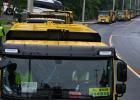 폐기물처리시설인 제주환경자원순환센터가 위치한 구좌읍 동복리 주민들이 2일 제주시 가연성쓰레기 수거차량의 소각장 진입을 또 막아섰다. 사진은 지난달 7일 동복리 주민들이 센터 진입로를 막아서면서 길게 줄지어선 쓰레기 수거 차량들. 한라일보DB
