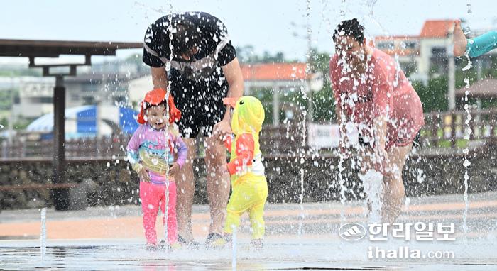 물분수로 폭염 식히는 아이들. 한라일보DB