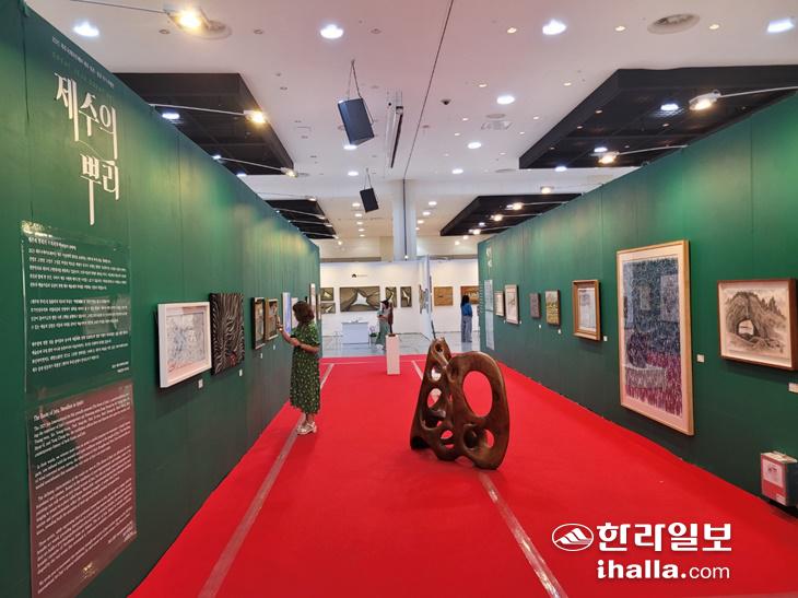 지난 4일 서귀포시 중문동 제주국제컨벤션센터 전시홀에서 열리고 있는 2025 제주국제아트페어(JIAF)에 제주 중견·원로 작가들의 예술세계를 조명하는 특별전 '제주의 뿌리'가 열리고 있다. 박소정기자