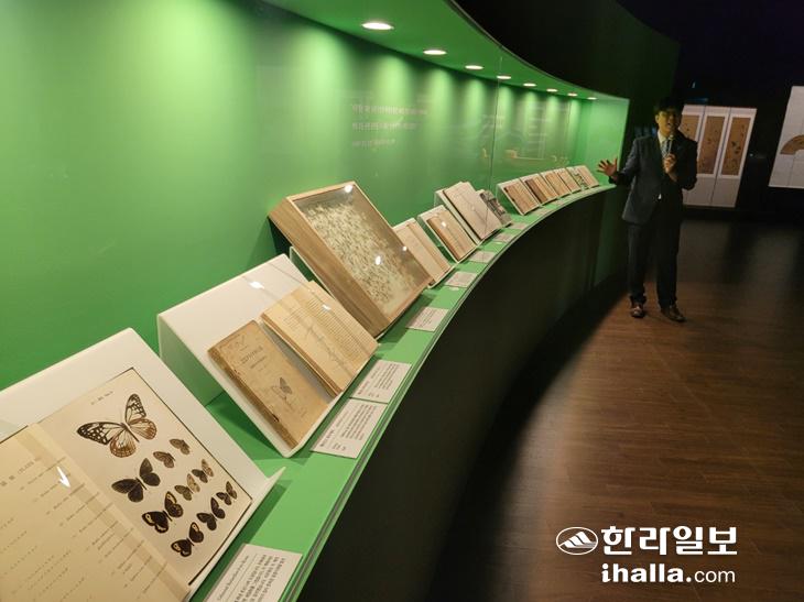 지난 4일 박물관 기획전시실에서 개막한 이번 전시는 광복 80주년 기념해 마련된 특별전시다. 전날 열린 언론 공개회에서 이재호 국립제주박물관 학예연구사는 "석주명은 나비 박사로 널리 알려진 생물학자일 뿐만아니라 자연과학과 인문학을 아우른 '융복합 학자'였고, 다양한 분야의 학문을 통섭하게 된 계기는 제주와의 인연에 있다"며 "이번 전시는 일제강점기와 해방공간에서 치열하게 살았던 석주명의 삶을 들여다보는 자리"라고 설명했다.