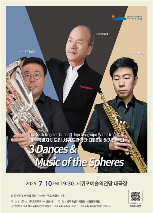 [한라일보] 제주특별자치도립 서귀포관악단이 이달 10일 오후 7시 30분 서귀포예술의전당 대극장에서 제88회 정기연주회를 연다.