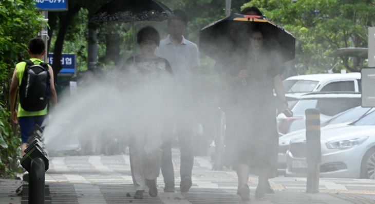 폭염을 덜어주는 길거리 안개분수. 한라일보DB