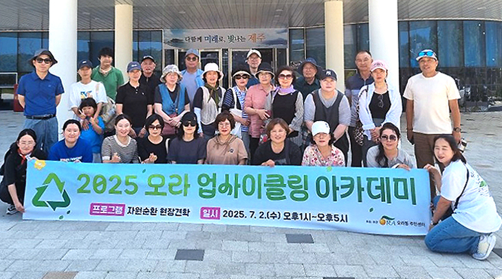 제주시 오라동(동장 강리선)은 지난 2일 제주환경자원순환센터와 제주시새활용센터에서 '2025 오라 업사이클링 아카데미'를 개최했다.