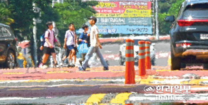 [한라일보] 제주전역에 폭염이 연일 이어지는 가운데 6일 제주시 연동 한 도로가 뜨겁게 달궈져 지열이 피어오르고 있다. 강희만기자