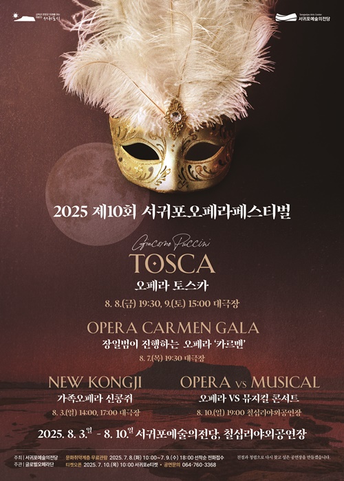 [한라일보] 서귀포시에서 오페라의 향연이 펼쳐진다. 오는 8월 3일부터 10일까지 서귀포시 서귀포예술의전당 대극장과 서귀포 칠십리 야외공연장에서 열리는 '2025 서귀포오페라페스티벌'이다.