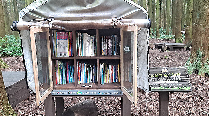 어린이책방은 숲길을 찾는 어린이와 가족들이 자연과 함께 하며 독서를 통해 꿈과 상상력을 키울 수 있도록 하기 위해 마련됐으며 자율적으로 이용할 수 있다.