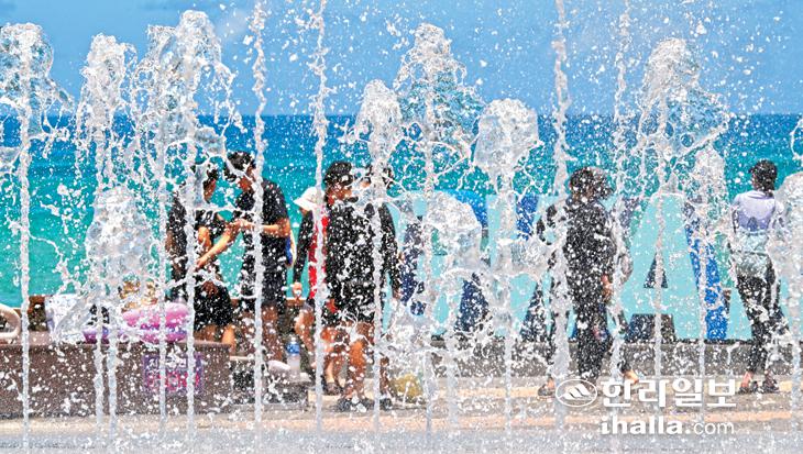 [한라일보] 더위가 시작된다는 소서인 7일 제주시 곽지해수욕장 분수대에서 시원한 물줄기가 뿜어져 나오고 있다. 강희만기자