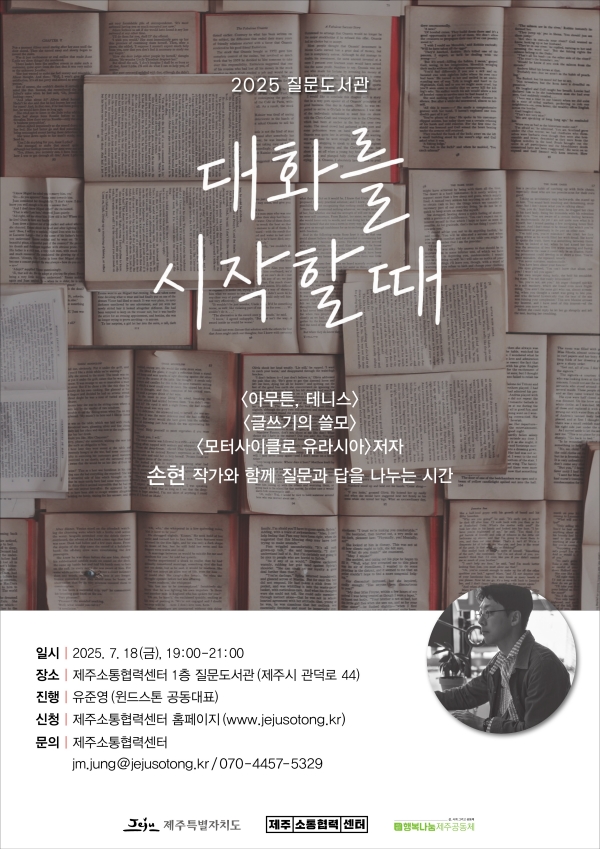 [한라일보] 제주특별자치도 소통협력센터(이하 센터)는 2025년 ‘질문도서관’ 사업의 일환으로 작가와의 만남과 소규모 대화모임을 운영한다고 8일 밝혔다.