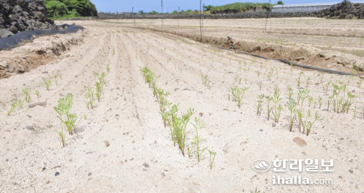 지난 8일 기준, 제주도 북부(제주)는 지난달 22일 일강수량 12.3㎜를 기록한 이후 보름 넘게 비가 오지 않았다. 나머지 지역도 지난달 24일 서부(고산) 1.2㎜, 동부(성산) 1.5㎜, 남부(서귀포) 4.8㎜ 이후 비가 없었다. 제주지역 장마는 평년과 달리 지난달 26일자로 조기 종료됐다.
