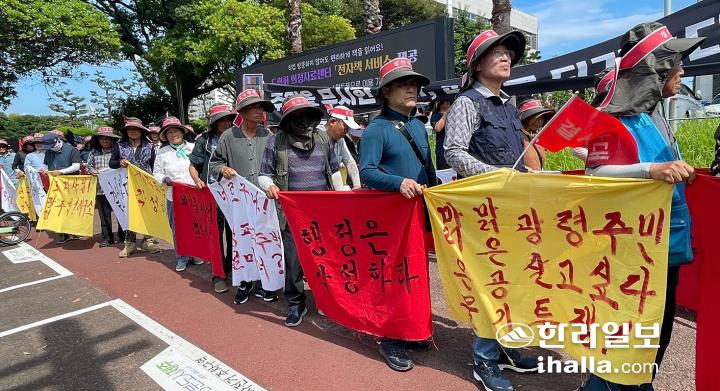 광령리 384번지 종합폐기물 사업 반대 대책위원회(이하 대책위)는 15일 오전 제주도의회와 제주도청 앞에서 총궐기대회를 진행했다.