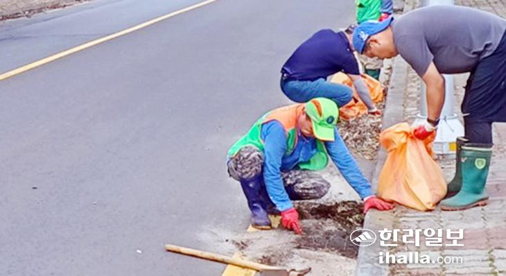 제주시 봉개동(동장 김형준)과 봉개동지역자율방재단(단장 고영빈)은 지난 14일 명림로 일원 배수로와 집수구 지장물 제거활동을 벌였다.