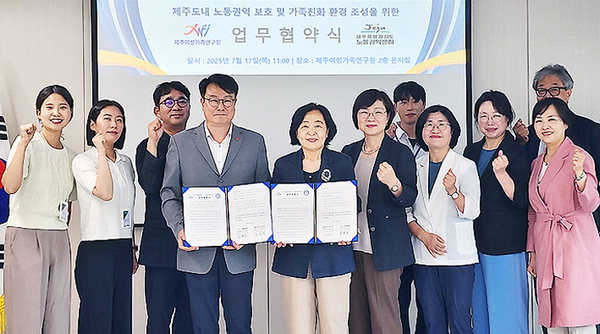 [한라일보] 제주여성가족연구원(원장 문순덕)과 제주특별자치도 노동권익센터(센터장 김경보)는 17일 도내 노동자의 권익 보호와 성평등한 일터문화 조성을 위한 업무협약을 체결했다.