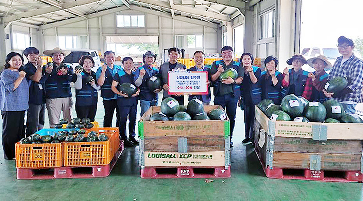 제주시 애월읍 신엄리 김수한 이장과 박수철 개발위원장은 지난 14일 신엄리에 소재한 애월농산물직거래장터에서 직접 재배한 햇수박 100통과 단호박 5상자를 애월읍에 전달했다.