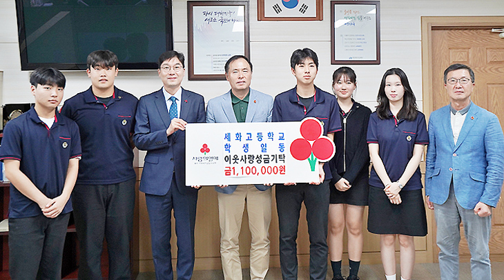 세화고등학교(교장 윤철훈) 학생일동(학생회장 조승빈)은 지난 16일 이웃사랑 성금 110만원을 제주사회복지공동모금회(회장 강지언)에 기탁했다.