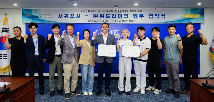 [한라일보] 서귀포시는 지난 18일 지역 농수축산물 소비 활성화와 온라인 판로 확대를 위해 서귀포시(서귀포in정)와 (주)위드라이크 간 업무협약을 체결했다.