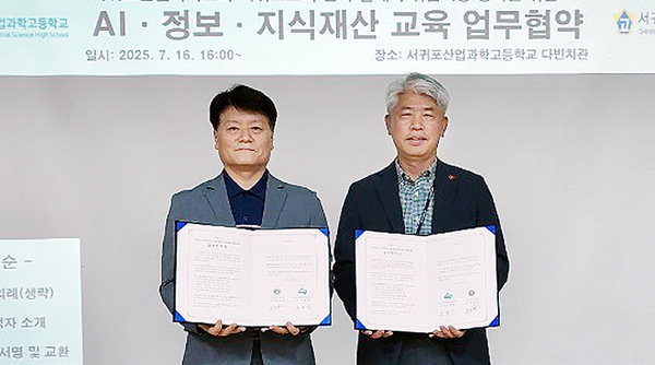 [한라일보] 서귀포고등학교(교장 홍성현)와 서귀포산업고등학교(교장 문경삼)는 지난 16일 인공지능(AI)·정보교육을 기반으로 한 진로 설계 및 취업 역량 강화를 위한 업무협약을 체결했다.