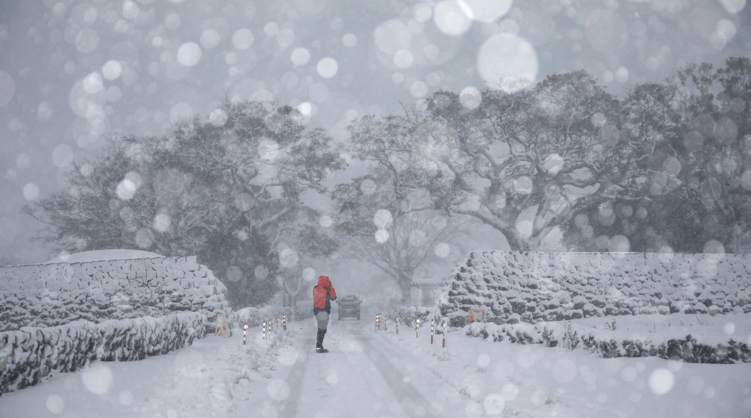 그의 수상작(사진)은 제주의 성읍민속마을에 내린 기록적인 폭설 속 풍경을 담아낸 사진이다.