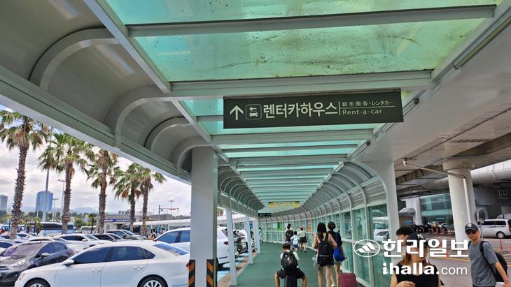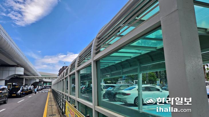 제주공항 청사 쪽면이 차단된 제주공항 캐노피 시설.