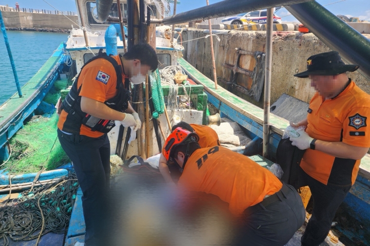 22일 오전 11시 20분쯤 제주시 외도2동 연대포구 북서쪽 약 900m 해상에서 조업 중이던 선박에서 60대 남성이 물에 빠지는 사고가 발생했다. 제주소방안전본부 제공
