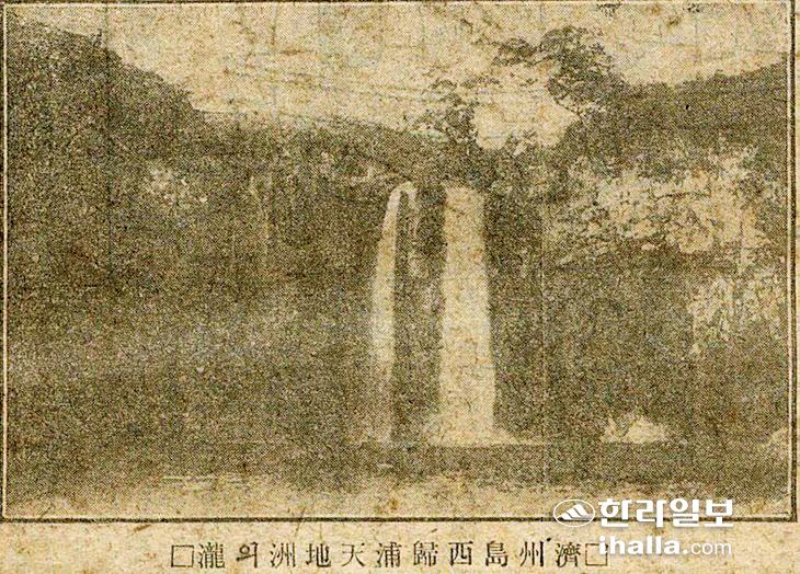 1917년(대정 6년) 7월 부산일보에 실린 천지연폭포. 국립중앙도서관 대한민국 신문 아카이브
