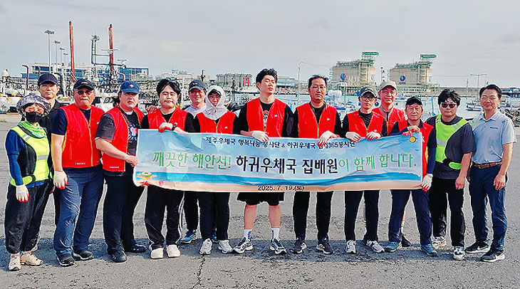 하귀우체국(국장 김경희) '집배365봉사단'은 지난 19일 배달구역인 애월~고내 해안선에서 쓰레기 줍기 및 환경정비를 실시했다.