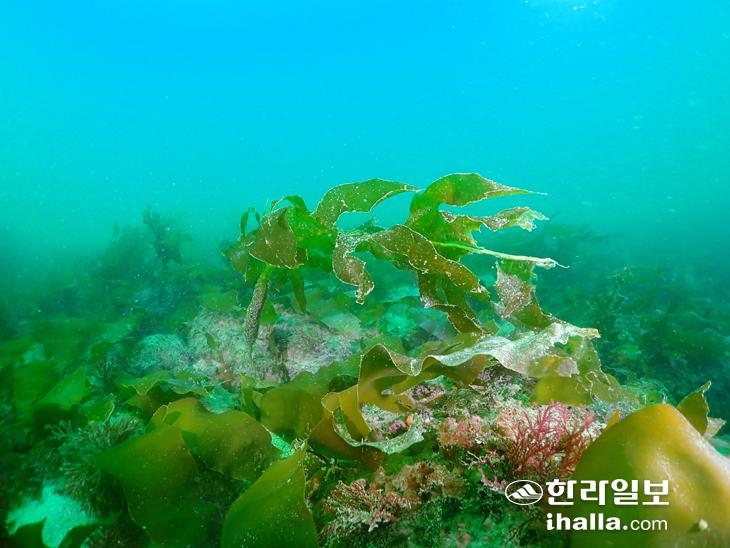 어초 주변 암반에는 유절·무절 석회조류가 하얗게 덮여 있었고, 그 사이사이에는 자연 번식한 감태와 미역이 돋아나 있었다. 따녹색열말미잘은 암반 위에서 우산처럼 펼쳐져 촉수를 꿈틀거리며 먹이를 포착하고 있었다.
