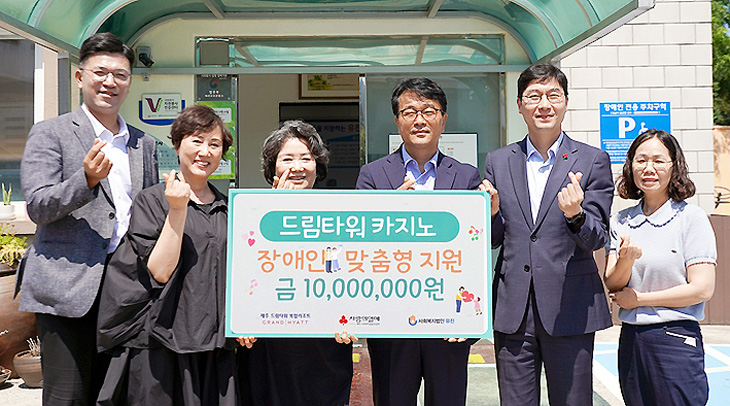 드림타워 카지노(대표 김한준)는 24일 사회복지법인 유진(대표이사 최은미)에서 장애인 복지 프로그램을 위한 성금 1000만원을 제주사회복지공동모금회(회장 강지언)에 기탁했다.