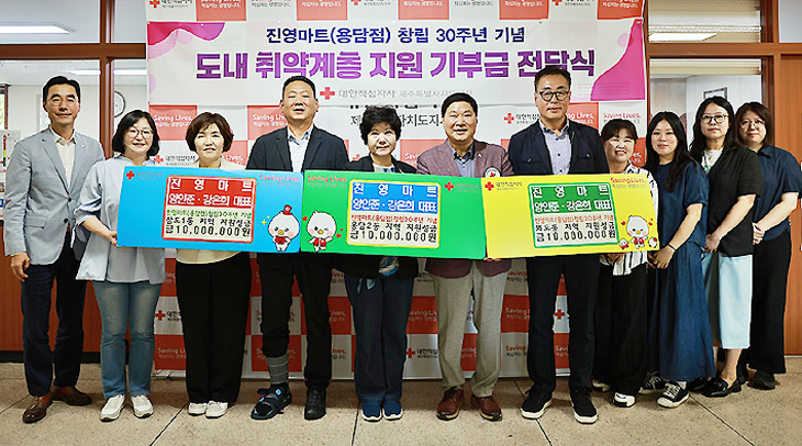 진영마트(대표 양인준·강은희)는 대한적십자사 제주도지사(회장 정태근)에 진영마트 용담점 창립 30주년을 기념해 취약계층을 위한 성금 3000만원을 기탁했다.