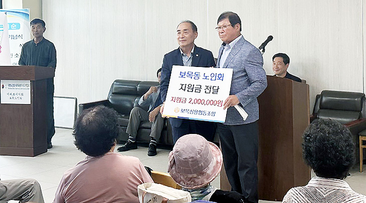 서귀포시 보목신용협동조합(이사장 현석민)은 지난 22일 보목경로당을 방문해 노인회 발전과 어르신들의 건강한 노후 생활을 기원하며 지원금 200만원을 전달했다.