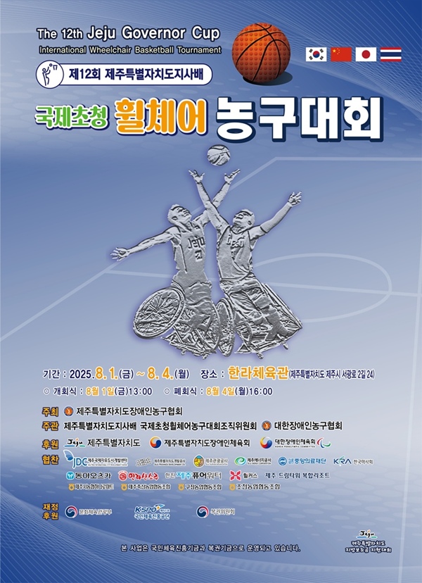 [한라일보] 제12회 제주특별자치도지사배 국제초청휠체어농구대회가 오는 1일부터 4일까지 나흘간 한라체육관에서 펼쳐진다.