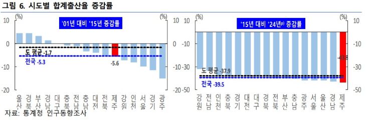 이는 세종을 제외한 16개 시도 중 가장 큰 하락폭으로, 제주지역 출생아 수 감소폭이 전국에서 네 번째로 작았던 것과 대비되는 모습이다.